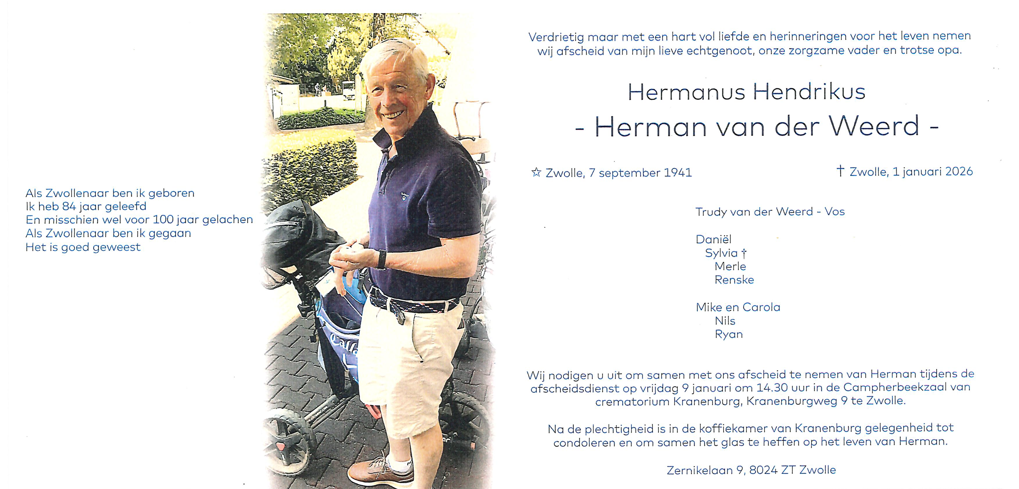 RouwkaartHerman van der Weerd